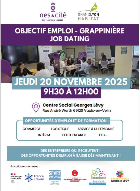 Cet événement est organisé par la Ville de Vaulx-en-Velin, France Travail, GRAND LYON HABITAT, la Mission locale et la MMI’e